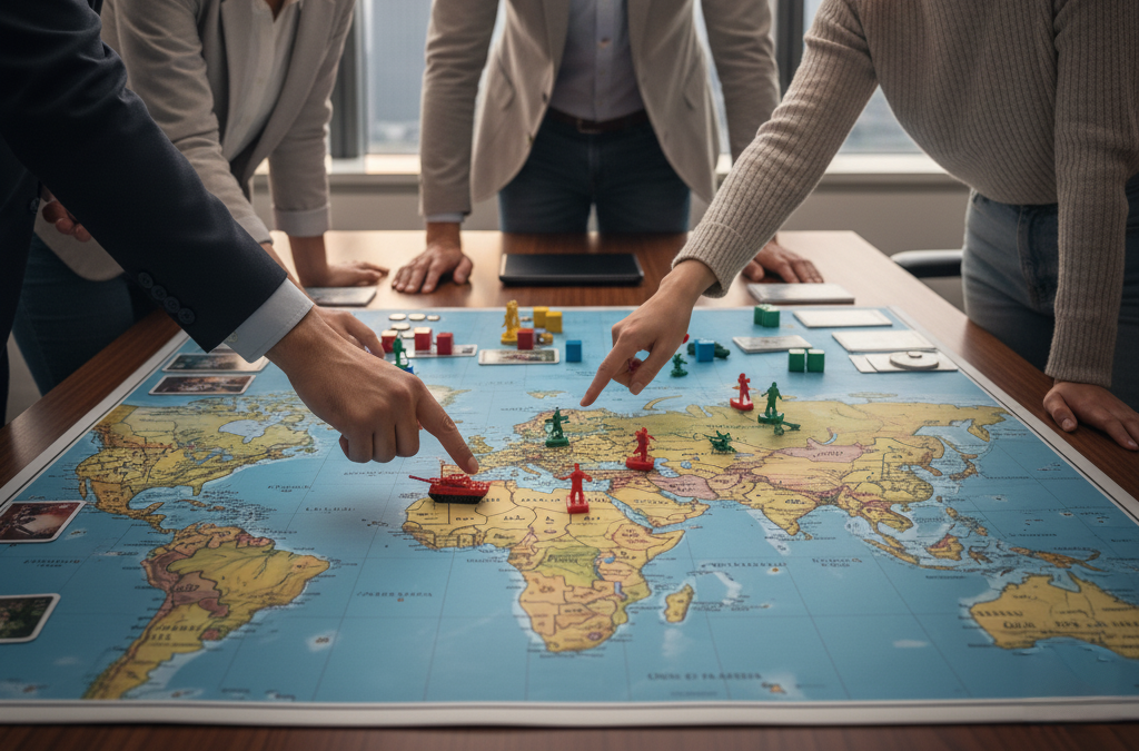 Nos jeux de simulation et ateliers immersifs plongent vos équipes dans des scénarios stratégiques inspirés du réel.